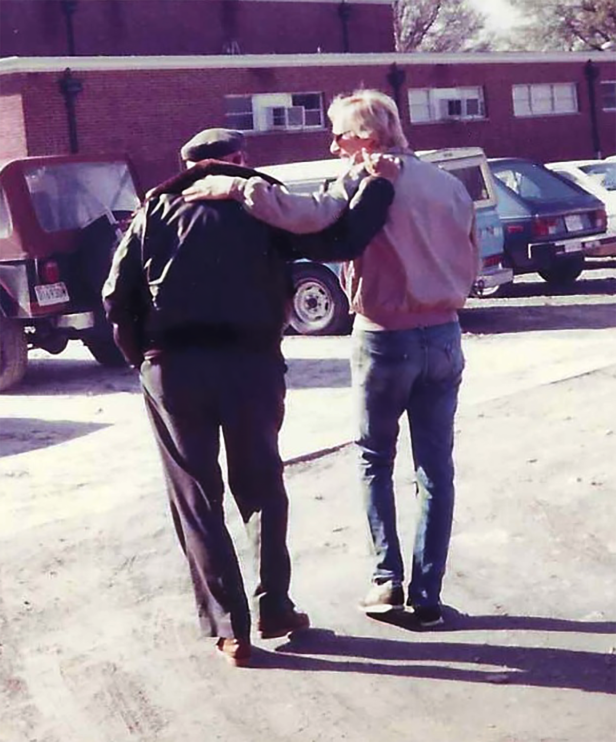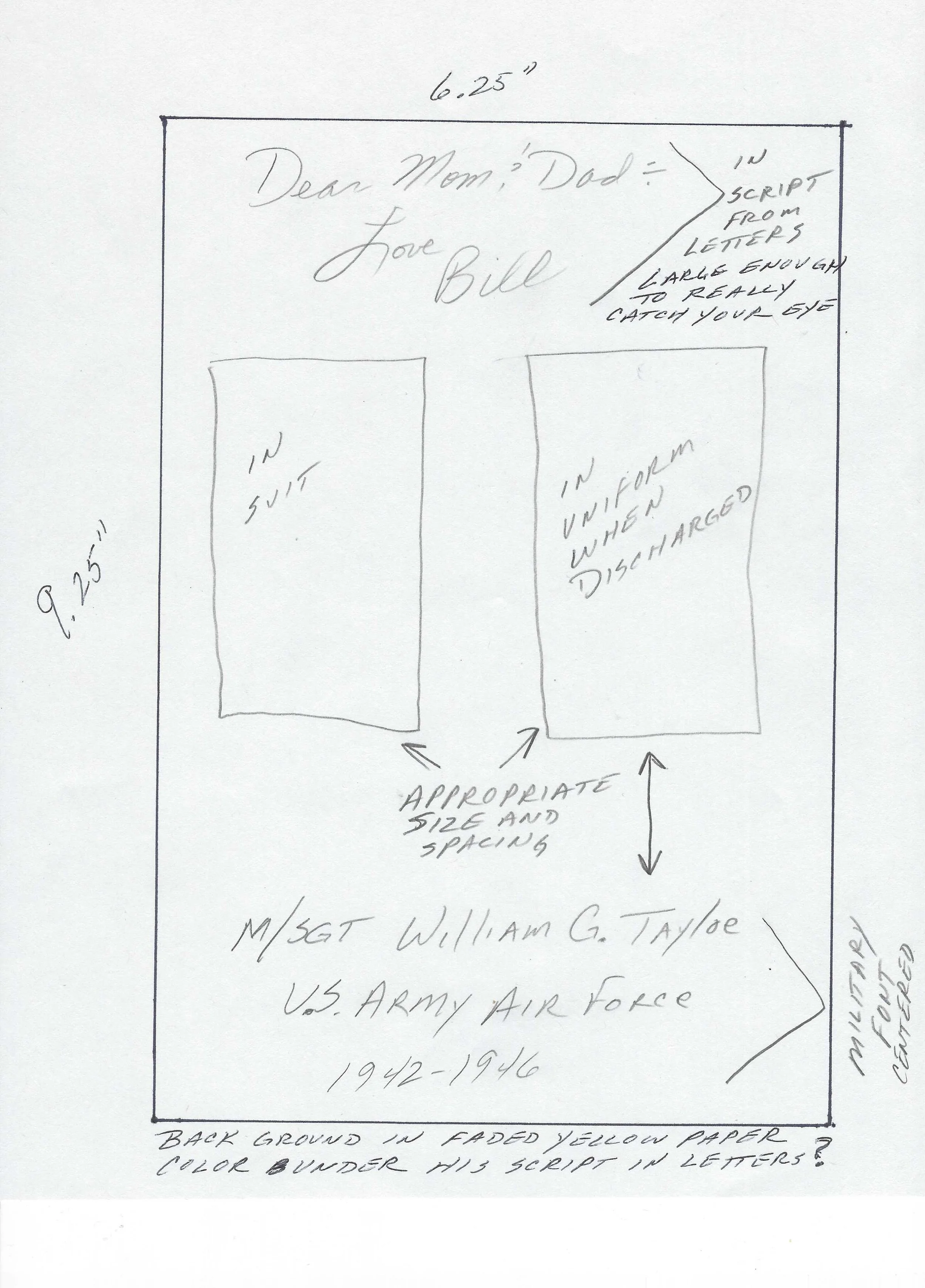 The red ribbon is the ribbon Bill got in the Army. The patch is his unit badge. Using a scanner and a little bit of Photoshop, I was able to incorporate these elements into the front cover.