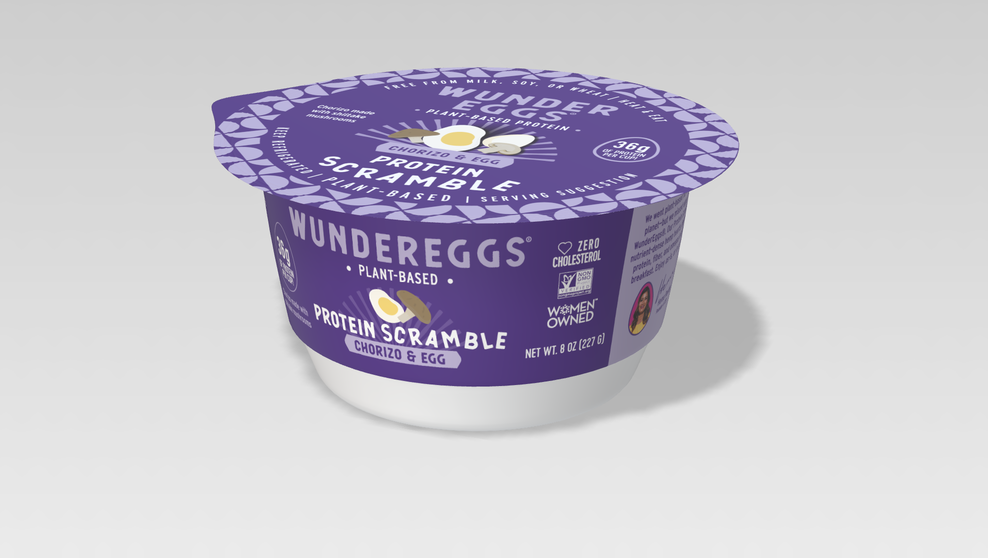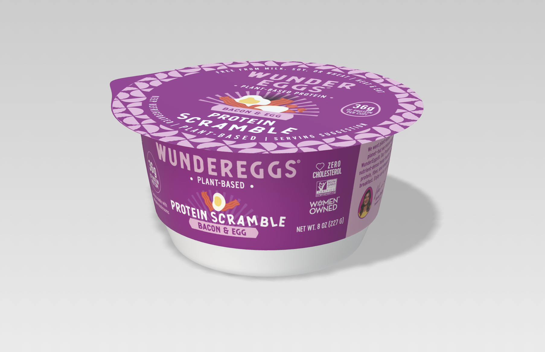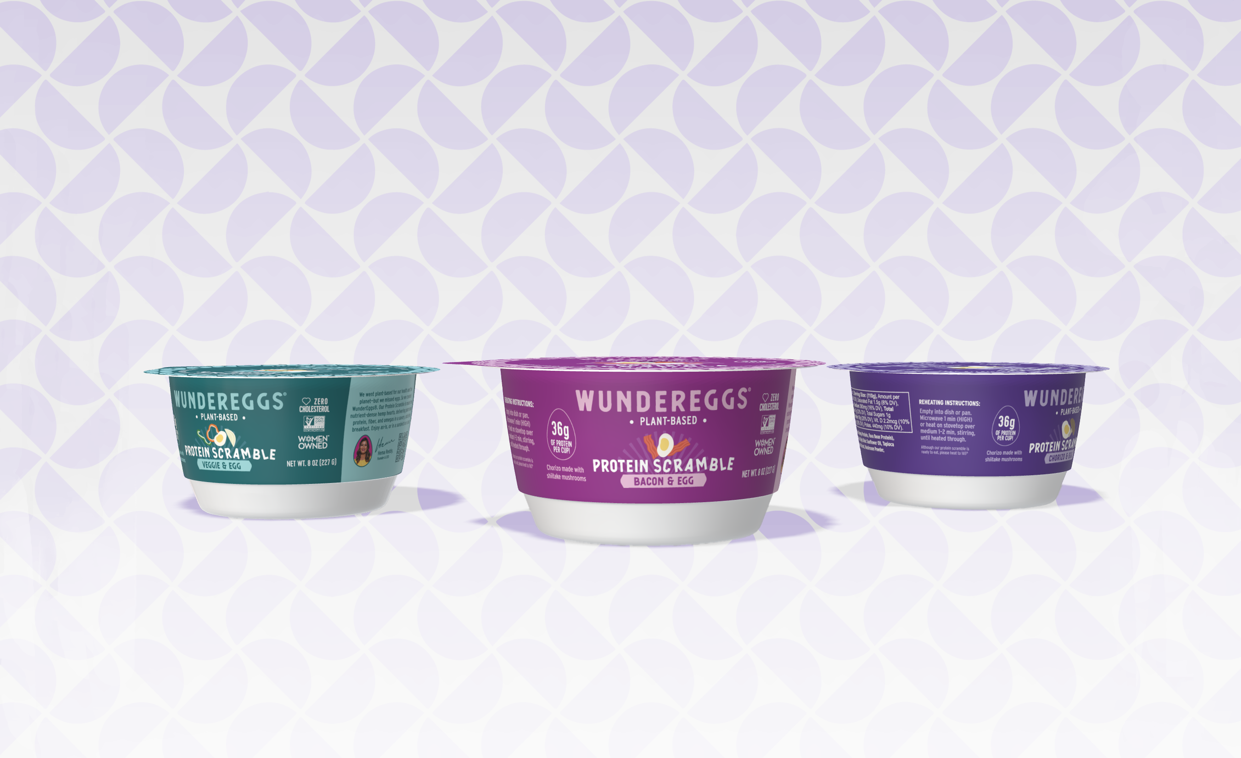 I designed the cups for the new WunderEggs Protein Scramble line! This new, on-the-go, vegan snack is refrigerated, easy to stack, and brand-forward!